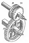 Principles of Mechanism, Willis's major engineering work, provided a mathematical analysis of the "relations of motions". It contrasted with earlier approaches in that it was not concerned with utility – a crank is defined as a machine for converting reciprocating to circular motion, or vice versa, whether it is used for raising water, grinding flour or sawing timber. He classified machines in two ways, firstly in terms of the type of contact: rolling, sliding, wrapping, linking and reduplicating; and second on whether the relationship between the connected motions was fixed or variable.[15] His examples were not confined to man-made machines. He showed that the joints of a crab's claw worked in the same way as Hooke's universal joint.[16][17]: 410–422 Willis's classification was influential, being adopted by other writers, including William Whewell[18][17]: 424 By 1870, thirteen works on mechanism had used Willis's scheme of classification.[17]: 433