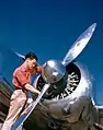 Mechanic with Lockheed Model 12 Electra Junior in 1940