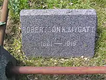 Robertson K. Mygatt or 'R.K.', (1861–1919) was an American landscape painter and etcher working at the turn of the 20th century. He is often associated with the Tonalist movement which was being experimented with in painting during most of his active years, having emerged as a movement in the 1880s that continued through about 1915. R. K. Mygatt was born in New York City in 1861, where he studied at the Art Students League of New York with noted landscape artist John Henry Twachtman and American impressionist painter William Merritt Chase. He also studied painting in Europe.
