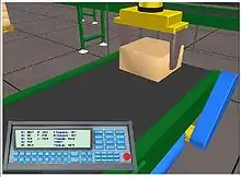 RoboLogix is a robotics simulator which uses a physics engine to emulate robotics applications.[1] The advantages of using robotics simulation tools such as RoboLogix are that they save time in the design of robotics applications and they can also increase the level of safety associated with robotic equipment since various "what if" scenarios can be tried and tested before the system is activated.[2] RoboLogix provides a platform to teach, test, run, and debug programs that have been written using a five-axis industrial robot in a range of applications and functions. These applications include pick-and-place, palletizing, welding, and painting.