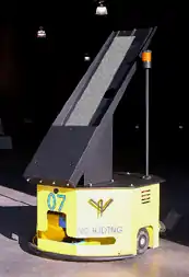 Mobile robots[85] have the capability to move around in their environment and are not fixed to one physical location. An example of a mobile robot that is in common use today is the automated guided vehicle or automatic guided vehicle (AGV). An AGV is a mobile robot that follows markers or wires in the floor, or uses vision or lasers.[86] AGVs are discussed later in this article.