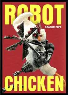 The fifth season of the stop-motion television series Robot Chicken originally aired in the United States on Cartoon Network's late night programming block, Adult Swim. Season five officially began on December 12, 2010, on Adult Swim, with "Robot Chicken's DP Christmas Special",[1] and contained a total of twenty episodes.