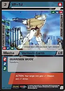 - Mecha cards depict fighting machines of various types, including Veritech fighters.