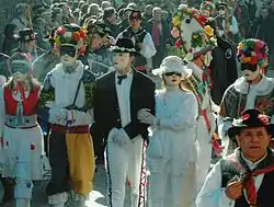 Lachera is performed in carnival time in its most complete form, with a wedding train through the countryside and 5 day of dances, songs, wine and great food, until it reaches the village and the rite itself is completely performed. Lachera is often exported in other regions and countries, like Belgium, Austria, France, Germany.