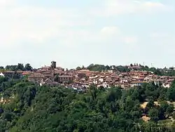 Rocca Grimalda (Ra Roca in dialect) is a village and comune in the province of Alessandria, Piedmont, Northern Italy. It lies in Upper Montferrat, a historical region of Piedmont, and it was built upon a rocky hill on the Orba's left bank, very close to Ovada. The nearest airport is the Cristoforo Colombo Airport in Genoa.