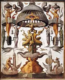 - Sala Baglione, with the Grotesque style frescoes integrating heraldic images (17th-century) done by Cesare Baglione