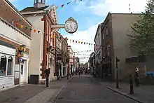 As a result of the restructuring of the Church during the Reformation the cathedral was reconsecrated as the Cathedral Church of Christ and the Blessed Virgin Mary without parochial responsibilities, being a diocesan church.[16] In the 19th century the parish of St Peter's was created to serve the burgeoning city with the new church being consecrated in 1859. Following demographic shifts, St Peter's and St Margaret's were recombined as a joint benefice in 1953 with the parish of St Nicholas with St Clement being absorbed in 1971.[17] The combined parish is now the "Parish of St Peter with St Margaret", centred at the new (1973) Parish Centre in The Delce (St Peter's) with St Margaret's remaining as a chapel-of-ease. Old St Peter's was demolished in 1974, while St Nicholas' Church has been converted into the diocesan offices but remains consecrated. Continued expansion south has led to the creation of an additional more recent parish of St Justus (1956) covering The Tideway estate and surrounding area.[18]