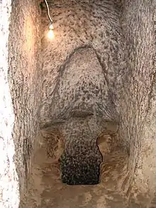 From traces of settlement it is known that the region of Cappadocia was inhabited in prehistoric times. Whether rock-cuttings had already been made at that time is not clear. It is probable however that in the Bronze Age at the latest, when the region was in the middle of the Hittite empire, the first passageways and rooms had been cut into the rock, as well as reservoirs and possibly even refuges in the cliffs.[4] In Derinkuyu underground city, only one tool of Hittite origin has been found and it might have been brought there at a later date.[5] The earliest attestation of these structures is in Xenophon's Anabasis, which mentions people in Anatolia who had built their houses underground.[6][7]