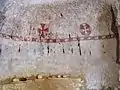 The design of the paintings allows the date of a church's creation to be determined to some degree. While the simple chapels in the underground cities are unpainted, the earliest churches above ground level have simple figural frescoes. One example is the Ağaçaltı Kilesesi[13] in the Ihlara valley, which was probably built in the seventh century. Later churches are decorated only with plain geometric decorations like crosses, zigzag lines, diamonds, and rosettes, which are drawn on the rock walls with red paint. These date from the eighth and early ninth centuries, the period of the Byzantine Iconoclasm. Possibly under Arab-Islamic influence all depictions of Jesus, the apostles, and the saints were forbidden by Leo III as being impious. In the two-storey Church of Saint John in Gülşehir, iconoclastic patterns can still be seen on the lower level.