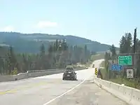 The Rock Creek Canyon Bridge is a large, multi-span, steel truss bridge on the Crowsnest Highway over Rock Creek Canyon in British Columbia. Originally built in 1951, the structure was widened and strengthened in 1992. Carrying two lanes of vehicular traffic, the bridge is 286 metres long and stands 91 metres above Rock Creek.[1]