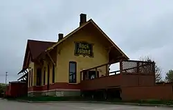 The Rock Island Passenger Depot is an historic building located in Oskaloosa, Iowa, United States. The Chicago, Rock Island & Pacific Railroad arrived in town in 1876, and they built a frame combination depot on the north side of the tracks. This depot replaced the original one in 1888 on the south side of the tracks, and it served ten passenger trains a day.[2] A separate freight depot was built to the east. President Theodore Roosevelt stopped here when he came to dedicate the new Y.M.C.A. in 1903. The freight and passenger depots were combined into a single facility once again in 1930, utilizing the passenger depot. The depot was officially abandoned in 1973. It was listed on the National Register of Historic Places in 1989.[1] The building now houses a pub.