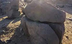 Rock gongs would be played by striking the rock's surface with a hand-held stone.[10] This beater would often be made of igneous stone, but examples of metamorphic quartzite beaters have been discovered.[11]