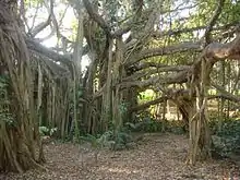 Other significant gardens include the lower gardens with the mature mango orchard; the arid garden; the pinetum with mature stands of Kauri, Radiata and hoop pines; the outer gardens figs (Ficus hillii) with associated ginger underplantings and water course; the zoological gardens and picnic area associated with the Murray Lagoon.[1]