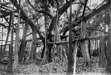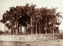 The Rockhampton Botanic Gardens was gazetted as public gardens in 1869. Prior to this, from 1861 most of the land that was to be utilised for the gardens was a Native Police barracks.[2] Between 1868 and 1872, three sites were gazetted as botanic gardens for Rockhampton. The influence of Anthelme Thozet, a local botanist and collector, is thought to have prevailed in the selection of the Spencer Street site. The proximity to a constant water supply, in the adjacent Murray Lagoon, and striking vistas from the western slopes of the Athelstane Range were primary considerations for a successful botanic gardens site.[1]