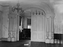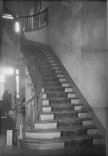 The interior of the house featured some of the most elaborate woodwork and plasterwork in the state.[6] Other features of the house were an impressive walnut staircase, double parlors and Italian marble mantles.[1][2]