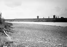 The posts were built at the confluence of the Clearwater River and the North Saskatchewan River. They were on the north bank just above the Clearwater and strongly built for protection from the Blackfeet. During low water there were rapids near the post. Around 1980, only two stone chimneys were standing. An interpretive centre was subsequently developed at this location.[9]