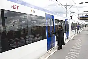 | E | Den Haag Centraal - Laan van NOI - Voorburg 't Loo - Leidschendam-Voorburg - Forepark - Leidschenveen - Nootdorp - Pijnacker Centrum - Pijnacker Zuid - Berkel Westpolder - Rodenrijs - Meijersplein - Melanchthonweg - Blijdorp - Rotterdam Centraal - Stadhuis - Beurs - Leuvehaven - Wilhelminaplein - Rijnhaven - Maashaven - Zuidplein - Slinge | RET Metro | 6x per hour (every 10 minutes), evenings and Sundays: 4x per hour (every 15 minutes) |