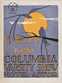 At Columbia University, Rodgers and Hammerstein collaborated on the 1920 Varsity Show, Fly With Me. The songs for the show were originally written by Rodgers (a freshman) and Lorenz Hart. Hammerstein, who was on the judging committee, added two songs in the revising stage.[4] Although Rodgers did not work with Hammerstein again until Oklahoma!, they achieved success independently from each other. Rodgers continued to collaborate for more than two decades with Hart. Among their many Broadway hits were the shows A Connecticut Yankee (1927), Babes in Arms (1937), The Boys from Syracuse (1938), Pal Joey (1940), and By Jupiter (1942), as well as many successful film projects.[5]