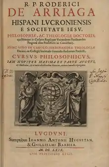 Rodrigo de Arriaga (17 January 1592 – 7 June 1667) was a Spanish philosopher, theologian and Jesuit.[2] He is known as one of the foremost Spanish Jesuits of his day and as a leading representative of post-Suárezian baroque Jesuit nominalism.