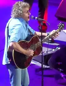 After 1999, it became more common for Daltrey to play guitar during both the Who and solo shows. He played a Versoul Buxom 6 handmade acoustic guitar on the Who's 2002 tour.[66] Daltrey owns a Gibson Everly Brothers Flattop acoustic guitar which he played on the Who and solo tours in the late first decade of the 21st century.[67] On his 2009 tour, he played Pete Townshend's "Blue, Red and Grey" on an Ashbury cutaway tenor EQ ukulele.[68]
