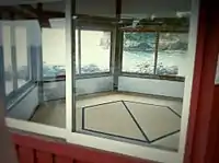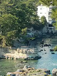 Rokkakudō (六角堂), was a hexagonal wooden retreat overlooking the sea along the Izura coast in Kitaibaraki, Ibaraki Prefecture, Japan.[1] Dating to 1905, it was part of the Izura Institute of Arts & Culture, Ibaraki University.[2] Constructed in the sukiya-zukuri style, single-storey, with a tiled roof, an area of nine square metres, and painted red, it was designed by scholar and critic Okakura Tenshin who spent time there with painter Yokoyama Taikan. In 2003 it was added to the Tangible Cultural Properties Register.[1][4] On 11 March 2011 it was swept off to sea in the tsunami.[5][6] It was rebuilt and opened to the public in April 2012.[7]