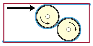 The Rolamite uses a stressed metal band and counter-rotating rollers within an enclosure to create a linear bearing device that loses very little energy to friction. One source claims it is the only basic mechanical invention of the 20th century.[4] Tests by Sandia indicated that Rolamite mechanisms demonstrated friction coefficients as low as 0.0005, an order of magnitude better than ball bearings at the time. There are known Rolamite versions that contain two bands that work in reciprocate parallel for more accurate kinematic transmission at the reverse motion.[5]