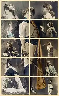 Puzzle in ten postcards showing Sarah Bernhardt in different roles (1906)