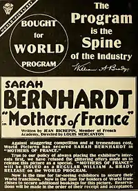 - "Sarah Bernhardt in Real War Film; "Mothers of France" from Scenario of Jean Richepin Moves Rialto Audience". The New York Times. March 12, 1917. Retrieved December 22, 2019.