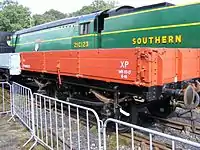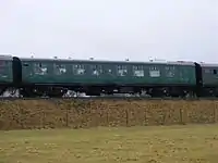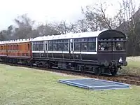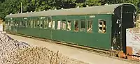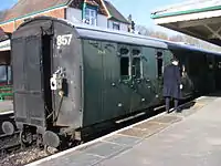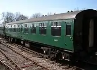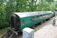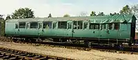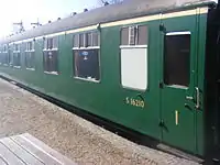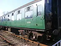 | SR | 11201 | 4-COR DMBTO | Built in 1938 for Set 3142. Preserved by the Southern Electric Group in 1972. Left Ashford Steam Centre in 1976 and went to the Nene Valley Railway where it acted as passenger coaches for the NVR's re-opening train in 1977.[44][45] Cosmetically restored in SR livery and put on display at Horsted Kenyes in 2005 until 2015. In June 2017, 11201 moved to a private site in Sellingde, Kent with two other carriages from 4-COR set 3142.[46] | ![]() |