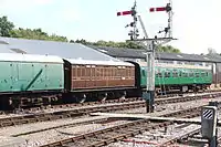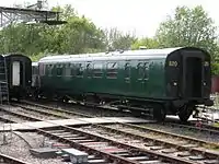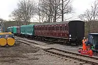 | LBSCR | 676 | Stroudley 4-wheel Brake Third | Built in 1875. Stored awaiting restoration. Moved into the OP4 carriage shed at Horsted Keynes in 2018.[19][20] Now on underframe of PMVY 1728 [21] | ![]() |