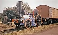 | Fletcher Jennings | 0-4-0T | Bluebell Railway | No. 3 Baxter. Built in 1877. Named after the chairman of the famous soup company and painted in a colour to match the cream of tomato variety of that company. Arrived at the Bluebell in August 1960. The engine returned to steam in August 2010 and is frequently used for shunting and for various tasks around the line. Baxter was fitted with vacuum brakes during 2011 to enable its solo use on passenger stock for the first time. In 2014, the engine starred in the movie Muppets Most Wanted, known as Randy Stevenot No. 3 with some American attachments. In July 2016, Baxter was invited to the Talyllyn Railway to celebrate Dolgoch's 150th birthday and becoming the first standard gauge engine to visit the railway. Boiler ticket expired 8 October 2018 and Baxter is now displayed in the newly refurbished display shed. | ![]() | |