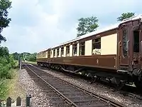 Four carriages built in 1898 and 1900 for use out of Baker Street station in London. Initially steam hauled, later used in electric trains, reverting to steam haulage on the Chesham branch in 1940. Purchased by the Bluebell Railway in 1961, and used until withdrawn in the late 1960s in need of major attention. Now returned to service and are unique as a close-coupled set of vintage carriages. The restoration team were the recipient of the Heritage Railways Association's award as overall winner of their 2006/7 carriage competition. The carriages have seen regular use on London Underground in recent years as part of steam operations on the Metropolitan line, and possess TOPS identities for movements over the Network Rail network to and from London.