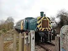 The main restoration depot is at Dereham. The three-road shed, built with a £100,000 European Union (EU) grant, has space to accommodate nine standard length coaches, steam or diesel locomotives.[6] Additional secure storage sidings have been built near Kimberley, relating to a main-line contract.[7] With the Mid-Norfolk being connected to the main Breckland secondary main line, the company's maintenance facilities are also employed for the regional Network Rail Rail Head Treatment Train (RHTT) during the autumn period.[8]