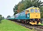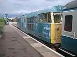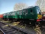 | L432 | Class 117 | 51370 + 51412 | BR Green | Undergoing restoration | Preserved in 1994, at the Chasewater Railway, then at Titley Junction railway station, followed by the Whitwell & Reepham railway station, before Arriving at the MNR in November 2020, for restoration to passenger use. Although not an Eastern Region type, the class did operate between Birmingham and Norwich,[36] and sister unit no. L411 (51346 + 59498 + 51388) visited the branch, as far as North Elmham, with the Hertfordshire Railtours 'Anglian Vibrator' railtour on 23 November 1985. Privately owned.[37] | ![]() |