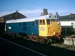 | 37003 | 'Dereham Neatherd High School 1912 – 2012' | BR Co-Co Class 37 | British Rail Blue | Undergoing restoration | Built by English Electric Vulcan Foundry, as works number EE/VF2866/D582, 37003 was released to Stratford depot (30A) as D6703 on 28 December 1960. In April 1963 the locomotive was named "First East Anglian Regiment", but the name was never unveiled. At Tinsley in 1989 37003 was given the unofficial 'painted-on nameplate "TIGER MOTH", which was carried until she was overhauled at Doncaster in 1992. 37003 was withdrawn from traffic in 1994 and stored at Bescot and Crewe, until purchase by the Class 37 Locomotive Group in 1998. 37003 is currently being restored to allow for mainline charter work.[18] In 2012 the locomotive was named after Dereham Neatherd High School, with full nameplates and the school crest. Nameplates were removed in 2014. | ![]() |