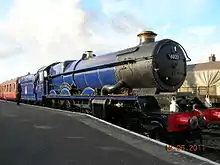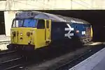 | 50019 | 'Ramillies' | BR Co-Co Class 50 | British Rail Large logo Blue | Undergoing overhaul | The class were built for working passenger services on the West Coast Main Line (WCML) north of Crewe, to Preston, Lancaster, Carlisle and Glasgow Central, with the locomotive being originally allocated the running number D419. The locomotive was named after HMS Ramillies on 18 April 1978. In 1984 Ramillies was repainted in a variation of BR Blue by staff at Plymouth Laira depot. 50019 had visited East Anglia prior to preservation, being stabled at March depot in January 1987.[22] Withdrawn for overhaul in 2013.[23] | ![]() |