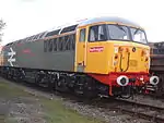 | 31255 | BR A1A-A1A Class 31 | EWS Maroon | Undergoing restoration | British Railways Class 31 diesel-electric locomotive 31255 was built at Brush Traction, Loughborough in January 1961 as a Class 30/2 (works number 284), 31255 was released to Sheffield Darnall (41A) on 19 January 1961 as D5683. In February & March 1966 the locomotive went under a major overhaul which included the replacement of the Mirrlees JVS12T 1,365 bhp (1,018 kW) engine to the English Electric 12SVT 1,470 bhp (1,100 kW) engine due to the original Mirrlees engine being unsuccessful. She left Brush on 12 March 1966, now reclassed as a Class 31/1. She was then renumbered on 1 January 1973 as 31255 under the new TOPS system. Towards the end of its mainline career, it was acquired by EWS and became the locomotive for the EWS livery paint trials but never ran on the mainline and spent its life under EWS at Toton (18A). 31255 was then withdrawn in January 1999, and went into preservation at the Colne Valley Railway, until bought by Harry Needle Railroad Company in 2015 for an aborted return to mainline operation.[14] In 2016 the locomotive was then moved to the MNR for storage. In 2020 the locomotive was purchased by a group of people for restoration and use on the MNR.[15] | ![]() | |