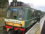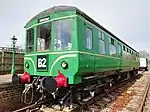 | - | BR Class 100 | 56301 | BR Green | On Display | Built in 1957. Used for static display – although proposed for eventual restoration. Trailer car 56301 was the first diesel multiple unit car to enter preservation in 1969, originally being used at the Chasewater Railway, before spending time at the Uranium Fuel Center, Salwick, and then having a period of storage at the King's Lynn Sugar Factory (between 1996 and 1997, while associated with the aborted National Diesel Railcar Museum project).[24][25] | ![]() | |