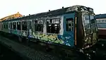 Undergoing repairs | The former Corkerhill set 695 built 1958/59 arrived at the railway in late 2003. In the last years of its mainline service for Strathclyde PTE, 51226 was shown to have suffered minor damage to the cab end in the Class 101 fire at Mossend.[29] It is owned by the MNRPT, and was repainted into its original green livery before entering service in Norfolk.[30][31] | ![]() | |