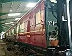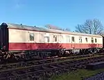 Vacuum braked, steam heated, owned by MNRPT. Previously on the Llangollen Railway.[51] | ![]() |