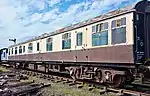 Unique catering vehicle built by Chas Roberts on the underframe of Mk 1 RK 80020. Used on one of the Cambridge Buffet Car express sets. Under restoration, private owner[49] | |