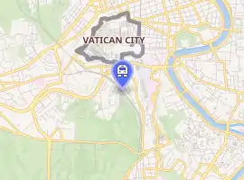 Roma San Pietro railway station (Italian: Stazione di Roma San Pietro) is a major station serving the city and comune of Rome, Italy. Opened in 1894, the station forms part of the Pisa–Livorno–Rome railway and the Rome–Capranica–Viterbo railway. It is also the junction for the short, single track Rome–Vatican City railway, which crosses into Vatican City after passing over a viaduct.