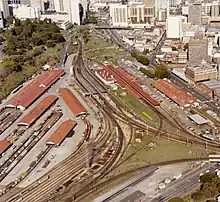 Roma Street railway station is located in the Brisbane central business district, Queensland, Australia. It is the junction station for the North Coast, Main, Gold Coast and NSW North Coast lines. The station is one of four inner city stations that form a core corridor through the centre of Brisbane.[1]