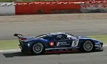 After leaving Formula One, Grosjean became involved in sportscar racing. In March 2010, Grosjean secured a drive in the inaugural FIA GT1 World Championship, driving a Ford GT1 for the Matech Competition team alongside German driver Thomas Mutsch.[19] The pairing won the opening Championship Race of the season in Abu Dhabi and added a second victory at Brno in May to lead the standings after the first three rounds of the season.[20]