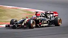 In 2012, Grosjean returned to Formula One with the Lotus F1 Team, alongside Kimi Räikkönen.[2] He took his first Formula One podium at the 2012 Bahrain Grand Prix and took his first fastest lap in the 2012 Spanish Grand Prix. He became the first driver since 1994 to receive a race ban after causing a multi-car pile-up, at the 2012 Belgian Grand Prix. In 2013 he remained with Lotus, taking six podiums. He drove for Lotus again alongside Venezuelan Pastor Maldonado in the 2014 and 2015 seasons and achieved a podium finish at the 2015 Belgian Grand Prix before moving to Haas from 2016 to 2020. In what would be his final Formula One race, Grosjean survived a dramatic crash during the 2020 Bahrain Grand Prix when his car separated in two and caught fire after penetrating a metal guardrail on the first lap. Grosjean sustained minor burns and credited the halo with saving his life.[3]