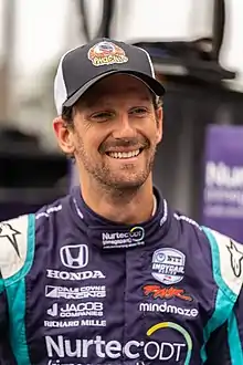Romain Grosjean (French: [ʁɔmɛ̃ ɡʁoʒɑ̃]; born 17 April 1986) is a Swiss-French racing driver racing under the French flag currently competing in the NTT IndyCar Series for Andretti Autosport in the 2022 IndyCar season. Grosjean had previously spent nine full-time seasons in Formula One for a variety of teams, picking up 10 podiums, all with Lotus.[1]
