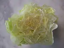 Romaine is a common salad green, and is the usual lettuce used in Caesar salad. Romaine lettuce is commonly used in Middle Eastern cuisine. Romaine, like other lettuces, may also be cooked. For example, it can be braised or made into soup.[10][11] The thick ribs, especially on the older outer leaves, should have a milky fluid that gives the romaine its typically bitter herb taste.