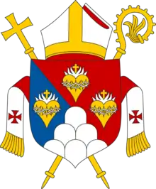 The new coat of arms of the Diocese was adopted in 2016. The proposal of coat of arms created Marek Sobola, a heraldic specialist from Slovakia.[1]