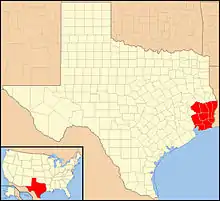 | Territory | The counties of Chambers, Hardin, Jasper, Jefferson, Liberty, Newton, Orange, Polk, and Tyler in southeast Texas |