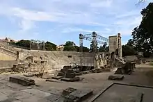 The Roman Theatre of Arles is a 1st-century Roman theatre, built during the reign of Caesar Augustus.[1] It is located next to the Arles Amphitheatre in the city of Arles, Provence, France. Along with the other Roman and medieval buildings in Arles, the theatre was listed on the UNESCO World Heritage List as part of the Arles, Roman and Romanesque Monuments site for their testimony to the ancient history of the city.[1]